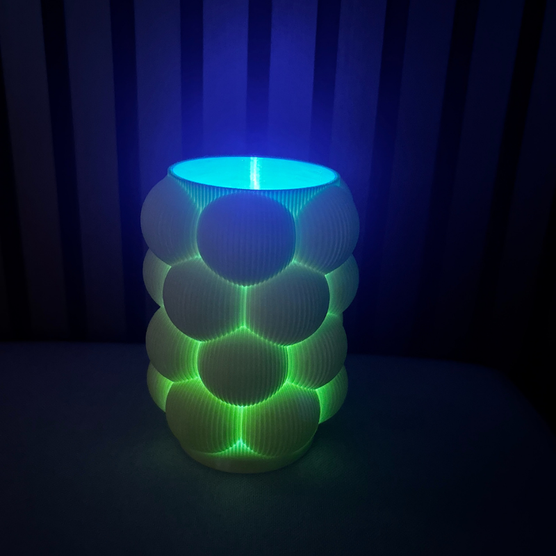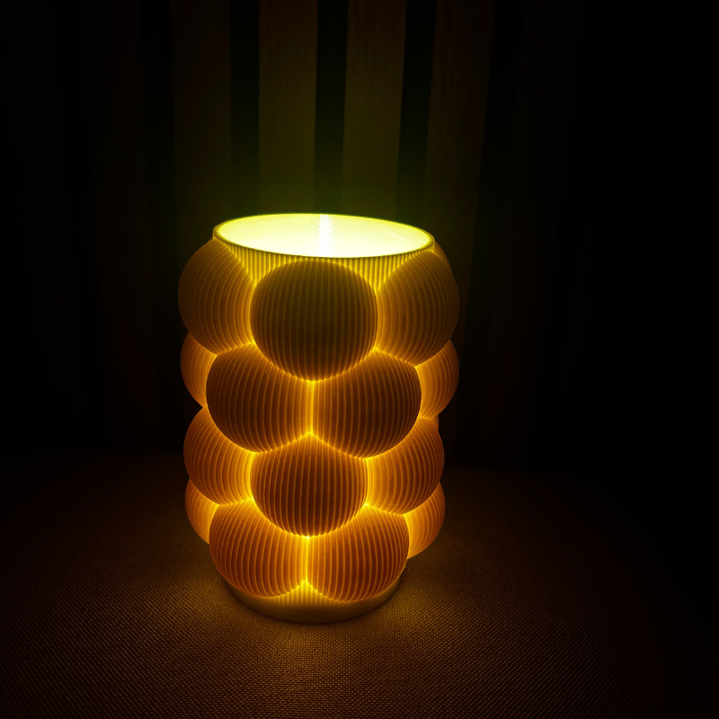 Moderni ir žaisminga naktinė lempa „Burbulinė“ suteiks jūsų kambariui jaukumo ir spalvų žaismės. Lempa spindi įvairiomis spalvomis. Dėl išskirtinės burbuliukų tekstūros ji tampa ne tik šviesos šaltiniu, bet ir interjero akcentu.