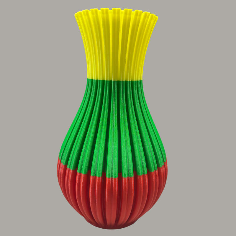 Patriotiško dizaino vaza „Trispalvė klasikinė“ – tai stilinga interjero detalė, puošianti namus lietuviška dvasia. Klasikinės formos vaza dekoruota ryškiomis Lietuvos trispalvės spalvomis: geltona, žalia ir raudona. Pagaminta 3D spausdintuvu iš ekologiško PLA plastiko.