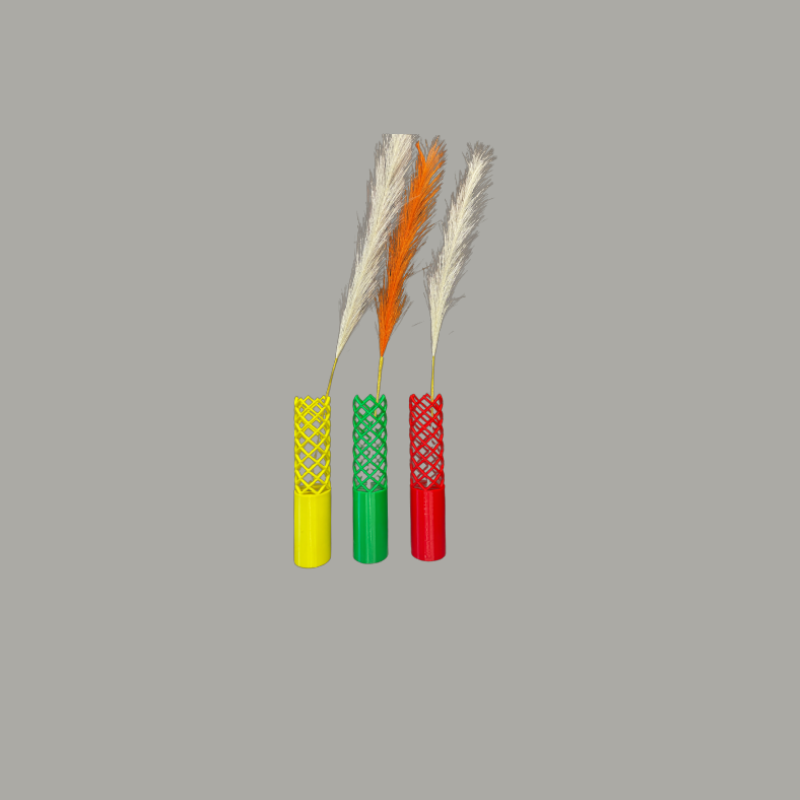 Unikalus trijų mini vazelių rinkinys „Trispalvė“ – pagamintas Lietuvos vėliavos spalvomis: geltona, žalia ir raudona. Viršutinėje dalyje esantis ažūrinis raštas suteikia lengvumo ir subtilumo, todėl jos puikiai tinka kaip stalo, lentynos ar šventinės dekoracijos akcentas. Pagaminta 3D spausdintuvu iš ekologiško PLA plastiko.