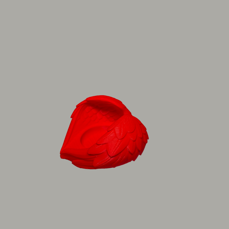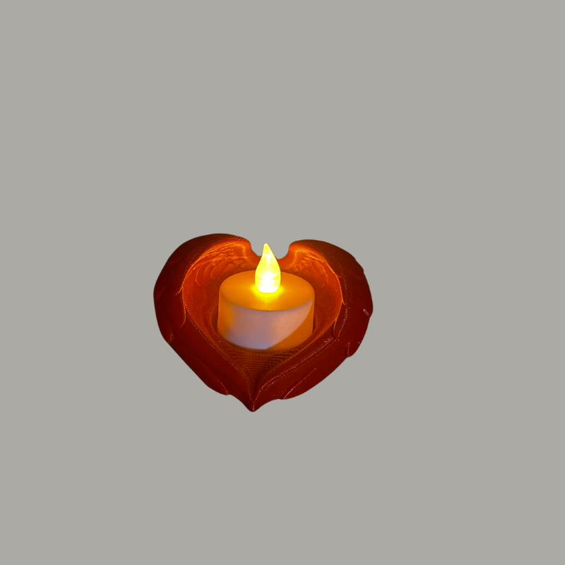 Romantiška žvakidė „Širdelė su sparnais“ puikiai tinka jaukiems vakarams ar ypatingoms progoms. Išskirtinis širdelės formos dizainas su sparnų ornamentais simbolizuoja meilę ir šilumą. Pagaminta 3D spausdintuvu iš ekologiško PLA plastiko, ši žvakidė saugiai naudojama su LED žvakutėmis.